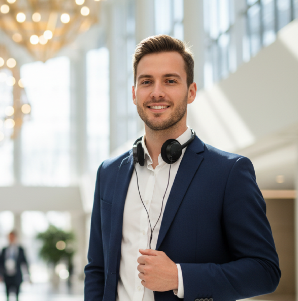 Intérprete simultáneo y Comunicador Social con más de 15 años de trayectoria global. Como fundador de Traducciones Profesionales Colombia SAS, ha sido la voz en español para organismos de máximo prestigio como la ONU (UNCTAD), el FMI y el MIT, garantizando precisión en los escenarios más exigentes.